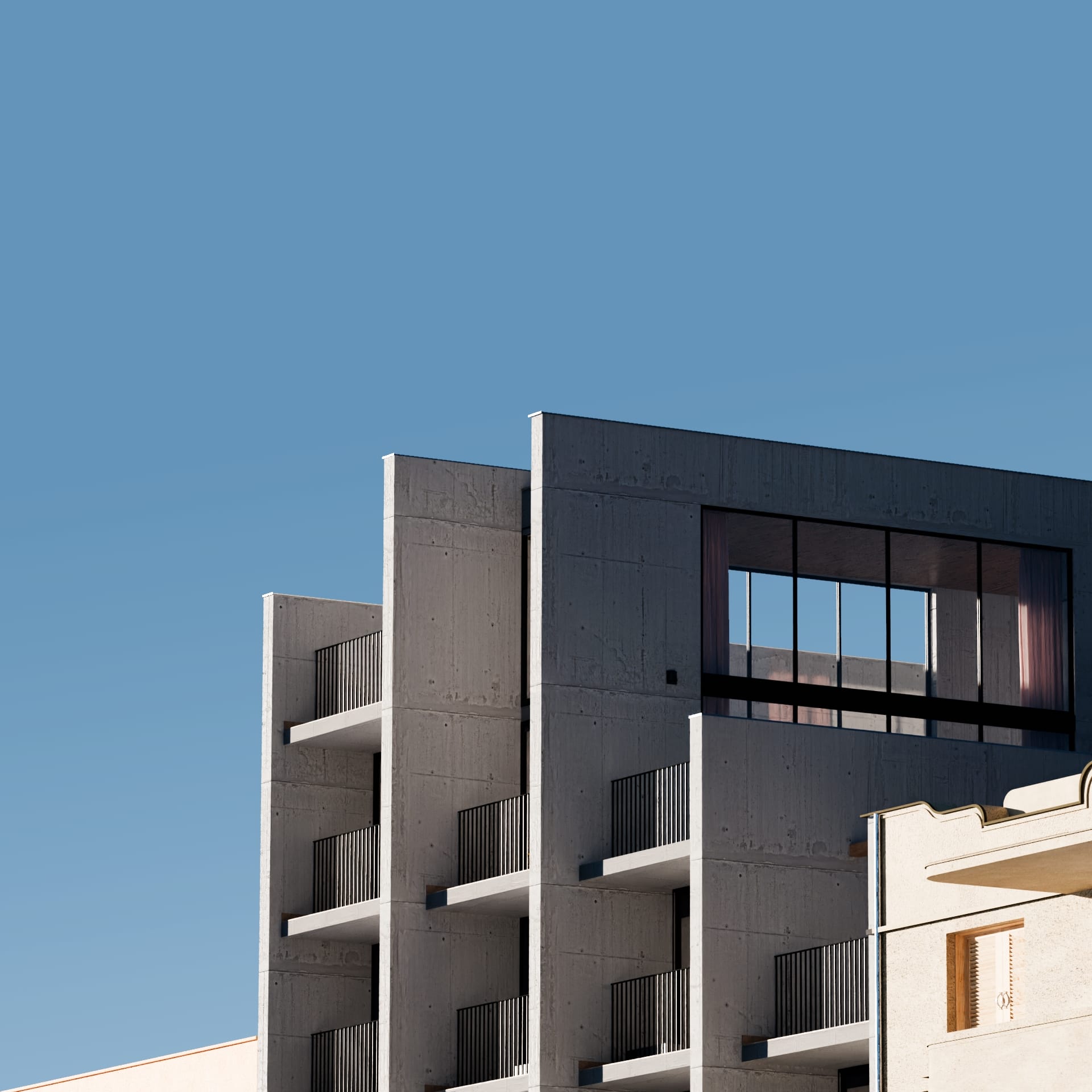 Visualisierung eines urbanen Kulturgebäudes mit markanter Fassade.